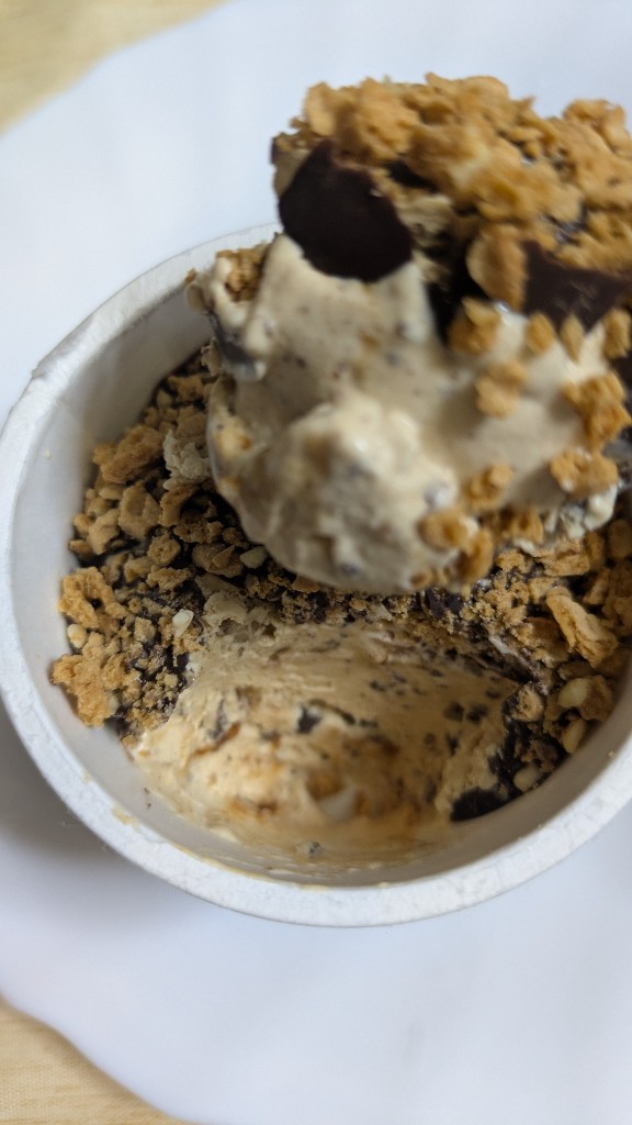 下の層のアイスはキャラメルの深みとチョコチップの食感が良く全体的に甘さとキャラメルアイスに深みがある味わいで贅沢なアイスでした😊