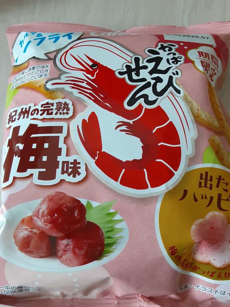 さっぱり爽やかな梅の風味がえびせんと良く合っていて美味しいです✨