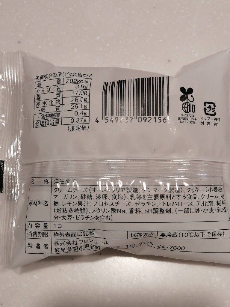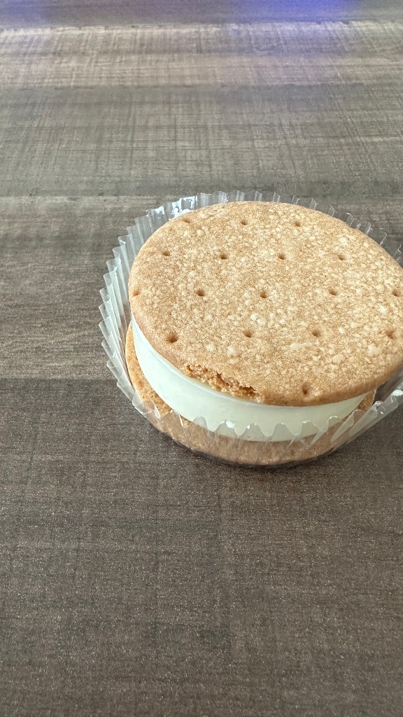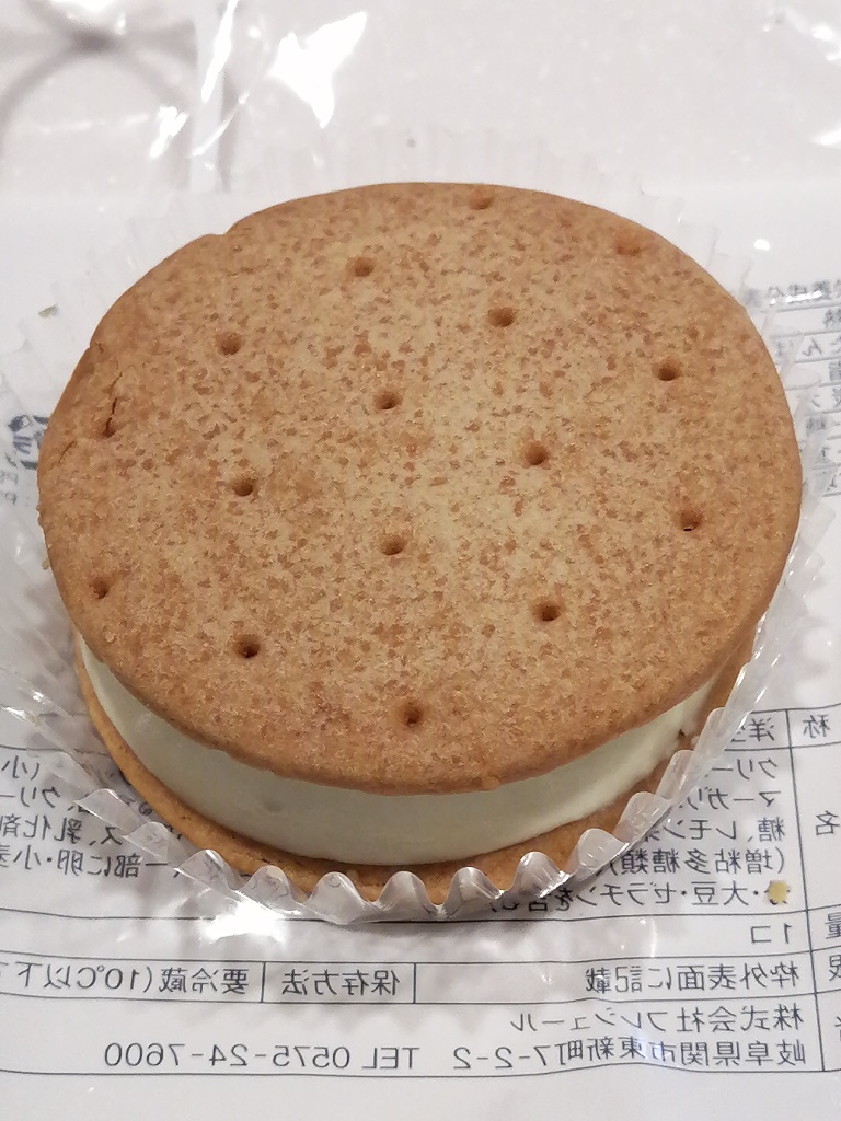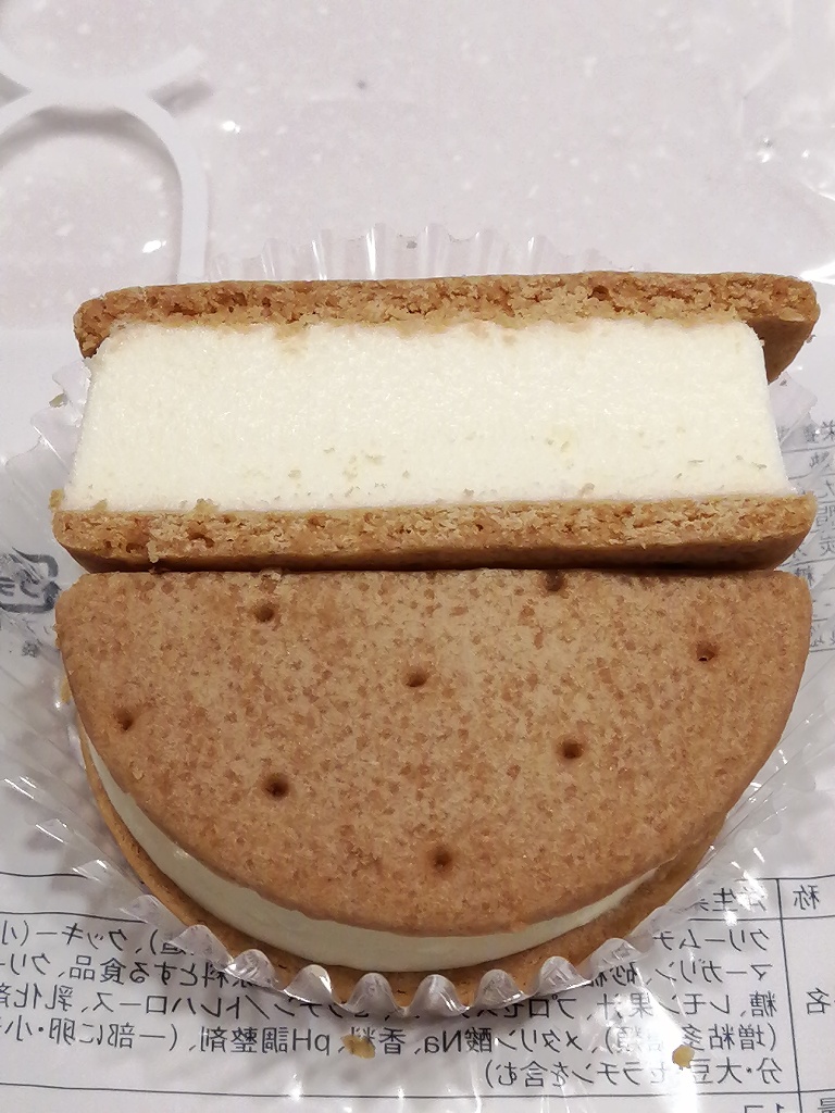 製造元はフレシュールで、なめらかなレアチーズが分厚いクッキーでサンドされています(^^)