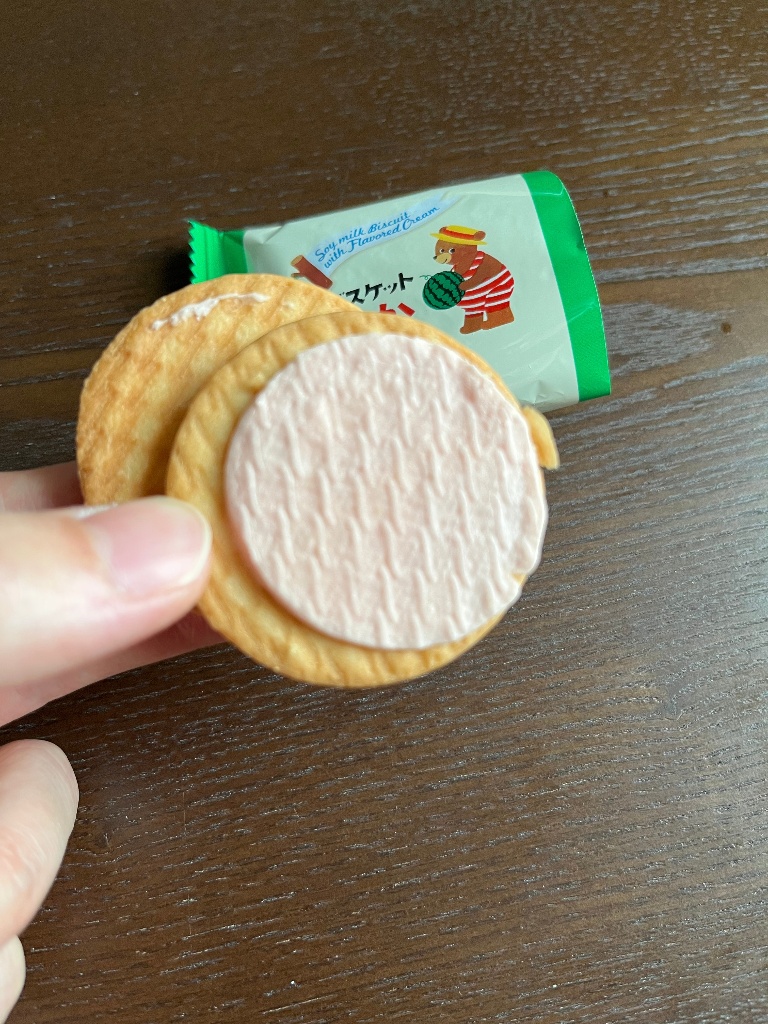 プレーンの豆乳ビスケットにすいかクリームがサンドされてます!