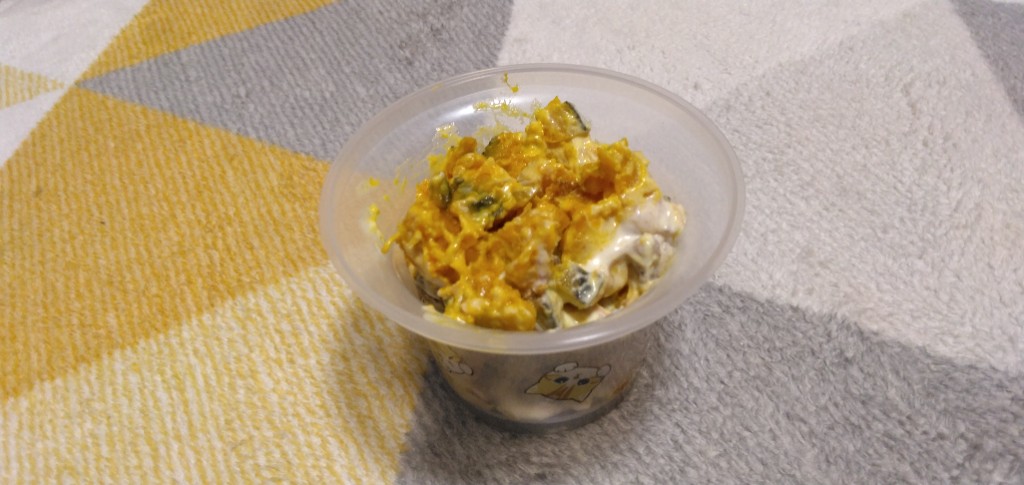かぼちゃはペースト状ではなく、ブロック状にしっかり形が残っていました。かぼちゃ自体は甘いです♡