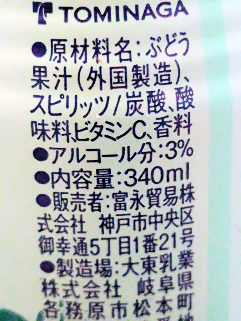 炭酸入り白ぶどうジュースの軽いアルコール感が美味しかった。どぎつい甘さではないので、飲みやすかった。