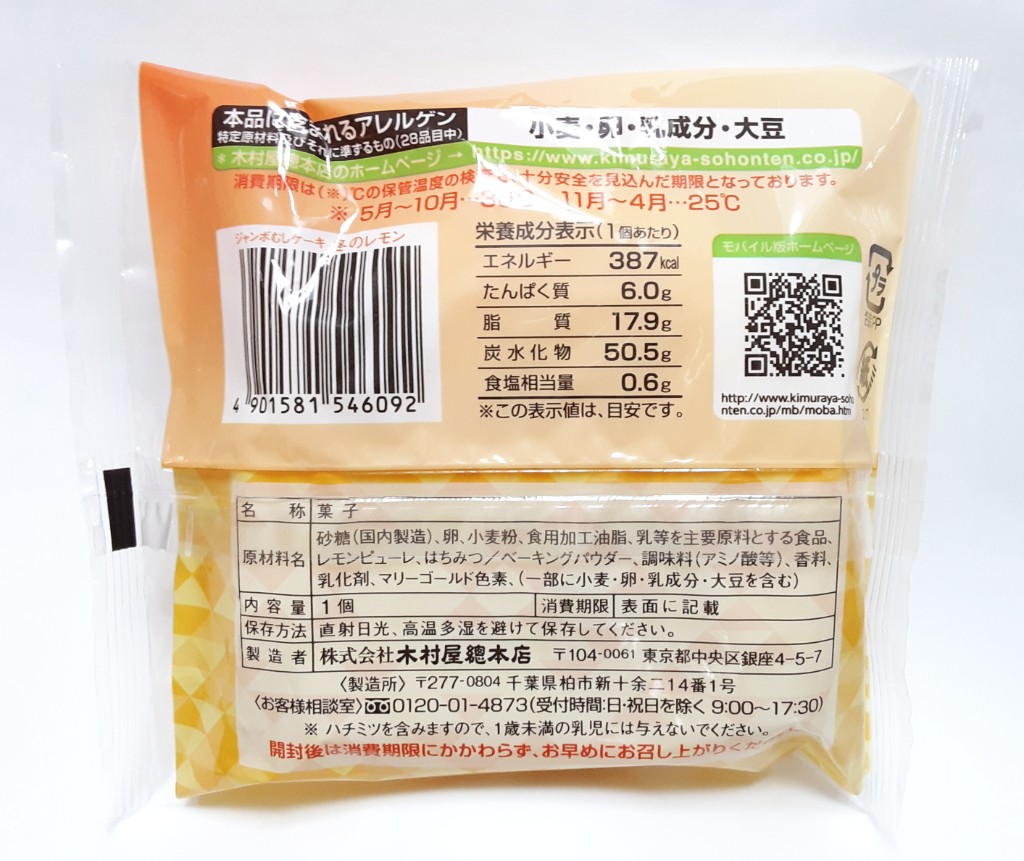今回は木村屋の『ジャンボむしケーキ冬のレモン』を購入!