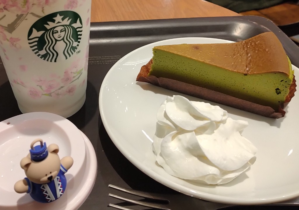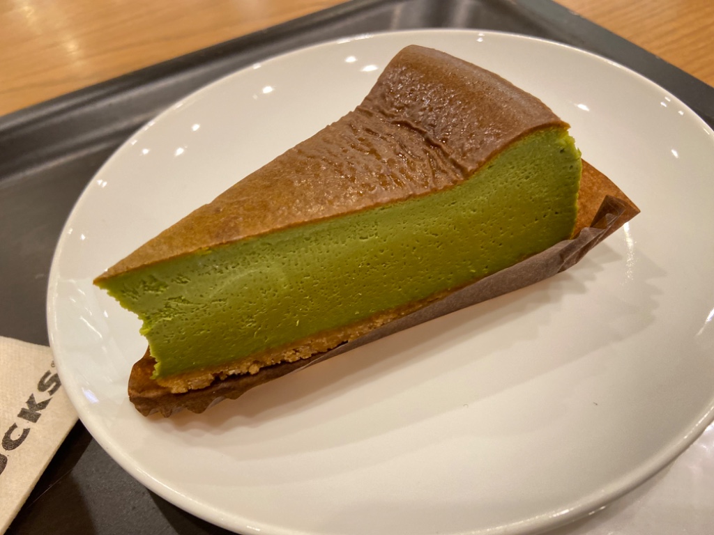抹茶チーズケーキとしては抹茶感の弱さが気になりますが、スタバのコーヒーと合わせる前提なら絶妙な和洋折衷スイーツだと思います💖