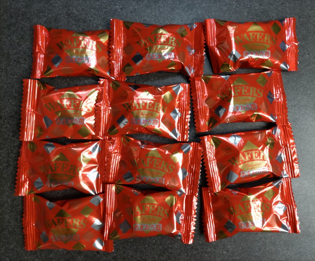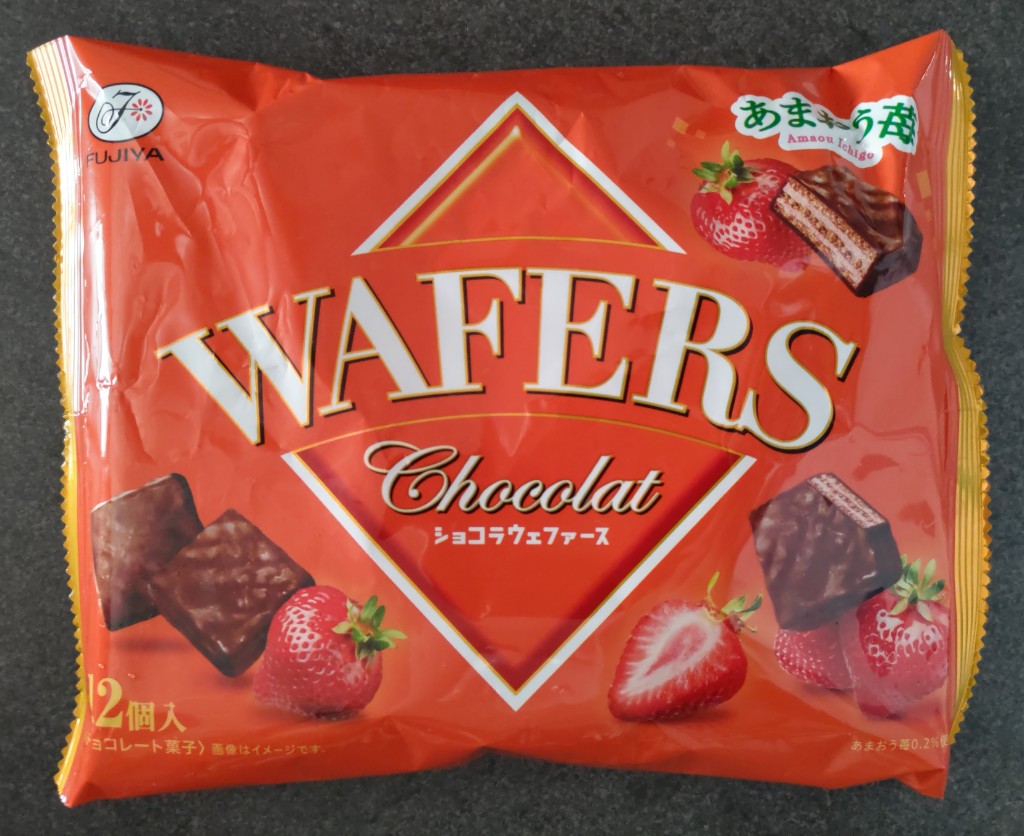 不二家 ショコラウェファース あまおう苺。気になっていたこの商品。半額になっていたので、購入しました。