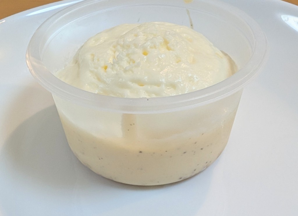 チーズというよりヨーグルト。子供の頃よく食べた青いアルミ蓋のバニラヨーグルトを思い出す。あのバニラヨーグルト、ガーッて混ぜてとろとろにして食べるの大好き。