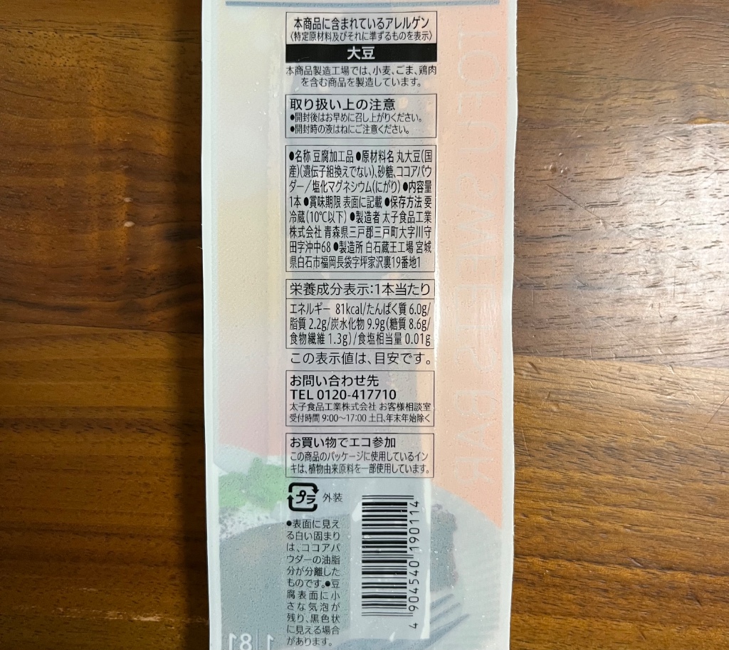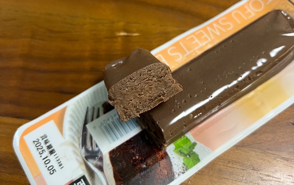 味は豆腐感のあるチョコケーキみたいな感じ。