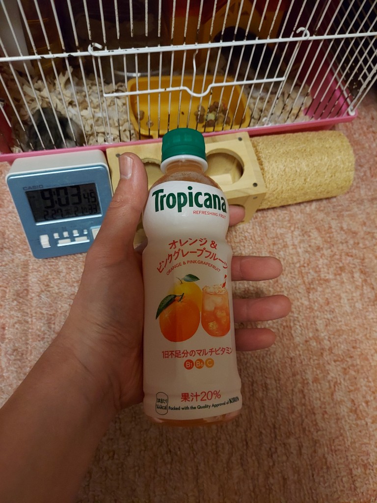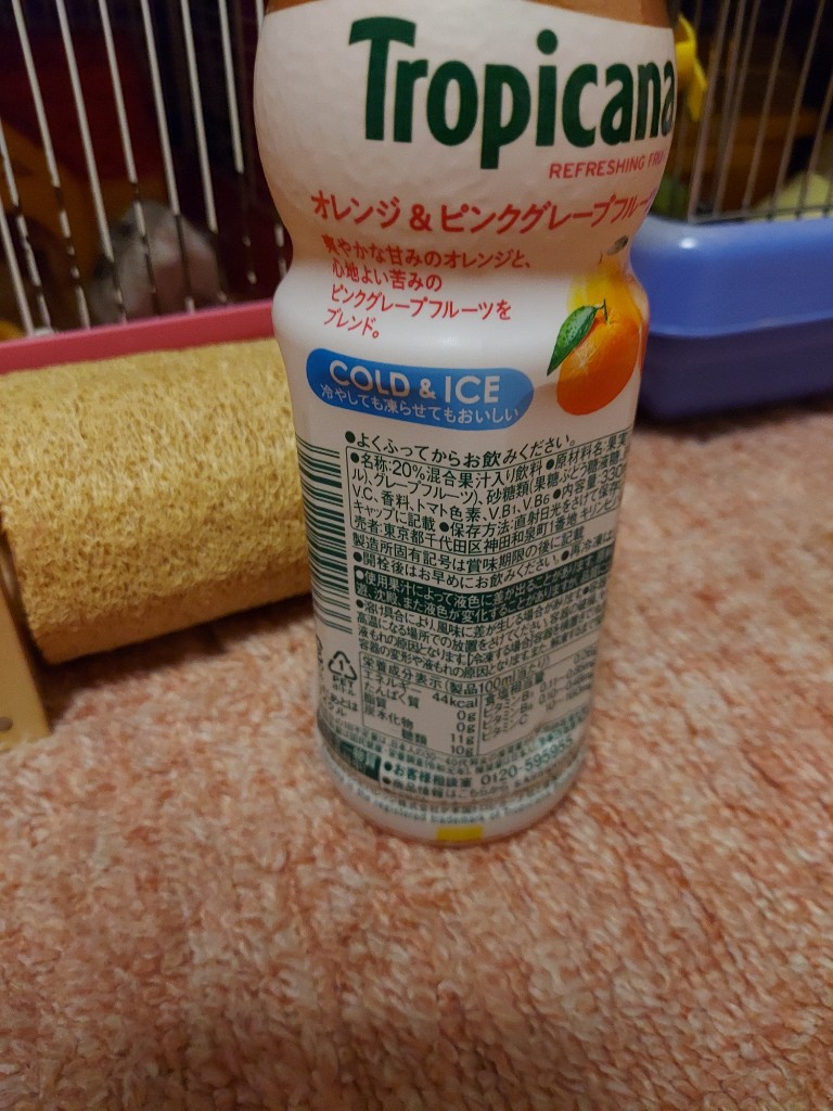 容量はペットボトルに入ったオレンジをベースにしたジュース?が330ml入り。爽やかなオレンジ&ピンクグレープフルーツ風味で美味しい〜(*^^*)