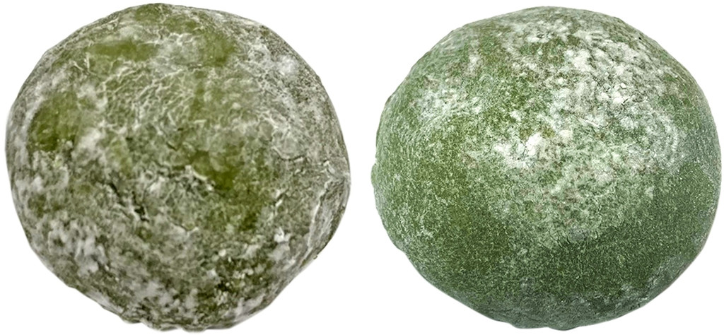 抹茶のお餅はもっちゅり歯切れよく、