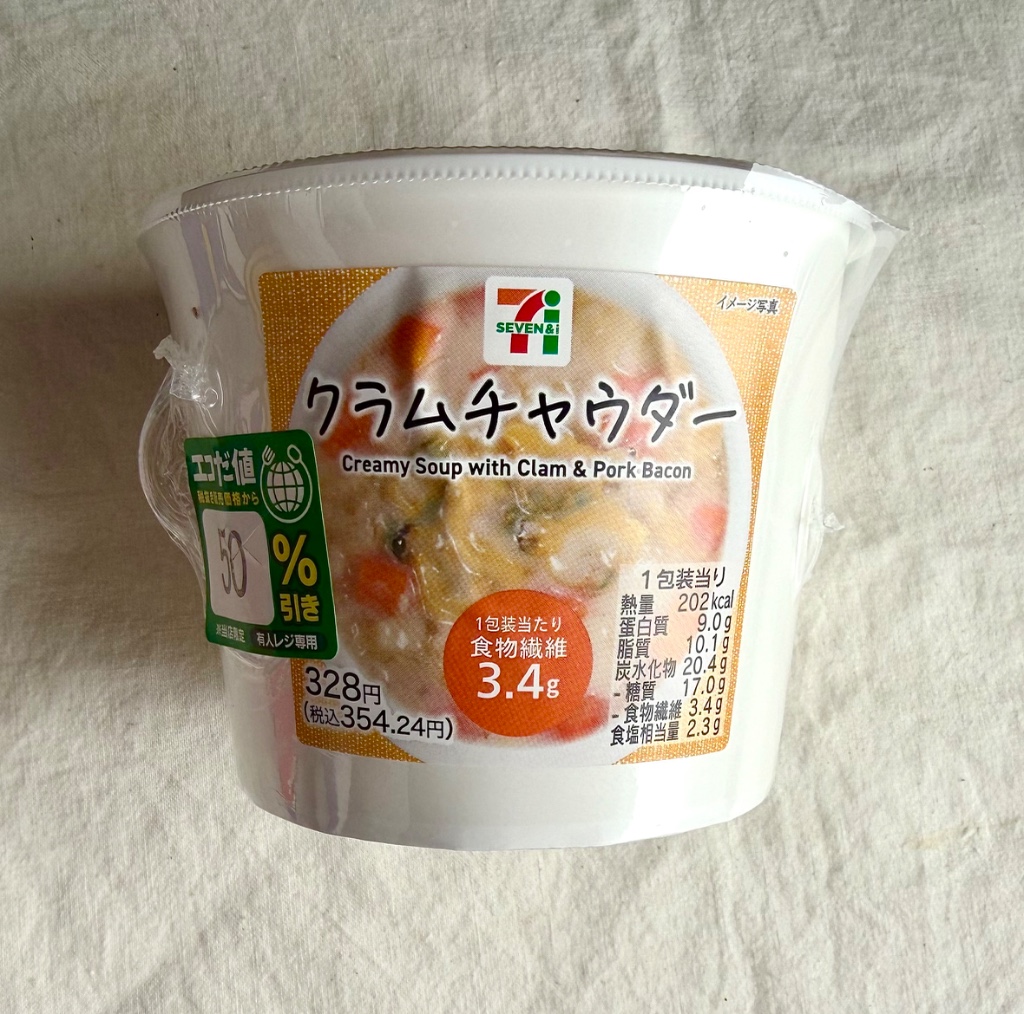 クラムチャウダーが食べたくて、セブンイレブンで見つけてうれしくて早速いただきましたが、