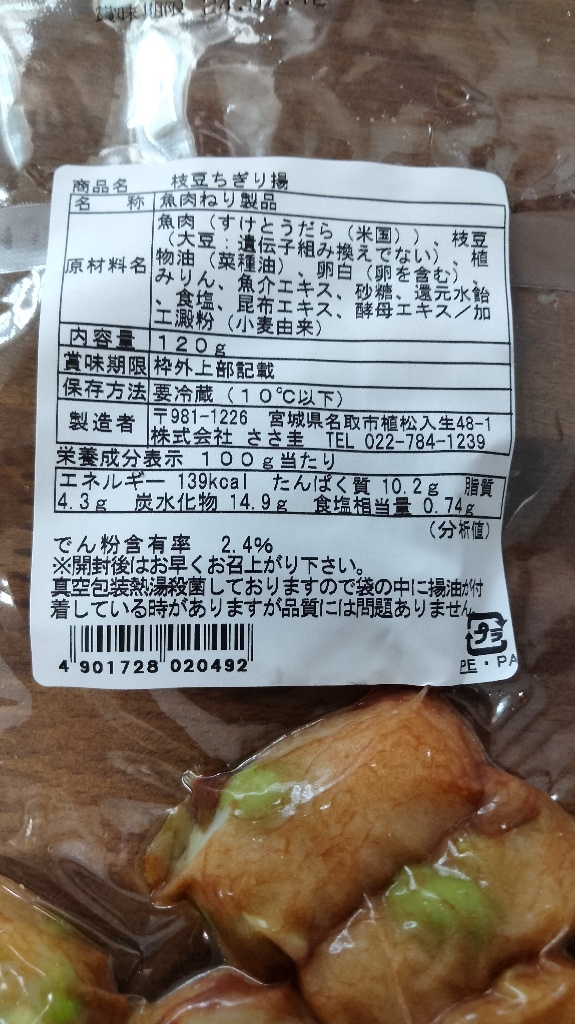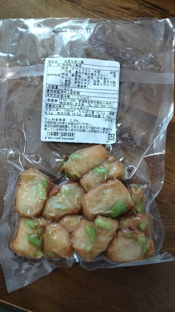 ささ圭さんは“吉祥”という名の笹かまを戴いた記憶があるけどアンテナSに無いので今期最終Saleで321円 唯一添加物のでん粉は含有率2.4%120g12個枝豆🫛が飛び出てるちぎり揚げは小さ目で表面積が多い分揚げの美味しさがあるのよね 菜種油で揚げられ油の癖は無くて私はもっとギト²を期待したけどあっさり冷蔵そのまま食べると柔らかくて揚げのゴワっとさ無し 最近食べた練り物の中では一番柔らかで弾力無いのはグチでは無く鱈🐟由来かな…味もほんのり甘く優しいわ ソフト揚げSweetsっぽさある... 続きを読む