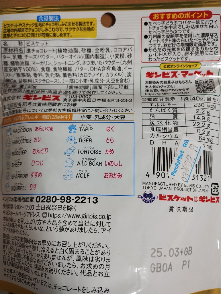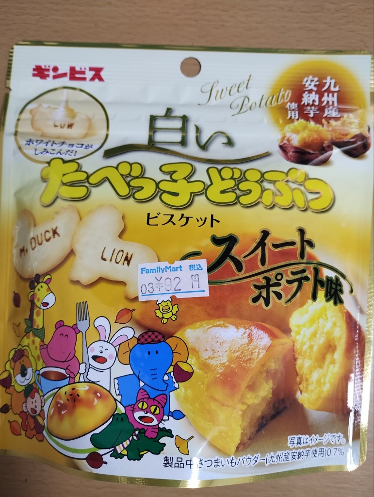 ギンビス たべっ子どうぶつ 白いたべっ子どうぶつ スイートポテト味。気になっていたこの新商品。さっそく購入しました。