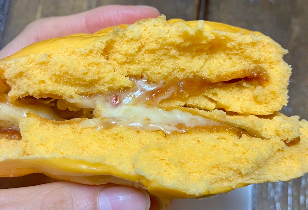 オレンジのまんじゅう生地はふわふわ、もちっとしてます。