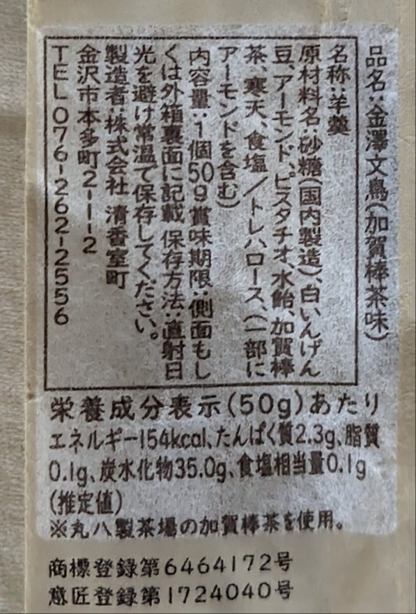 もぐナビホームへ > スイーツ・半生菓子 > 和菓子・その他 > 清香室町 金澤文鳥 加賀棒茶味