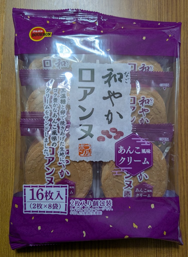 あんこのお菓子は好きだけどあんこ「風味」ってあんま美味しいの当たったことないんだよなぁ。でもロアンヌだし…と手に取るも好みと合わず。
