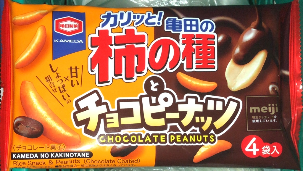 ピリリと辛くて香ばしい柿の種。 サクサク。 ピーナッツがチョココーティング。 カリカリ。 甘いチョコ。 柿の種とチョコピーナッツを一緒に食べると、甘じょっぱい。