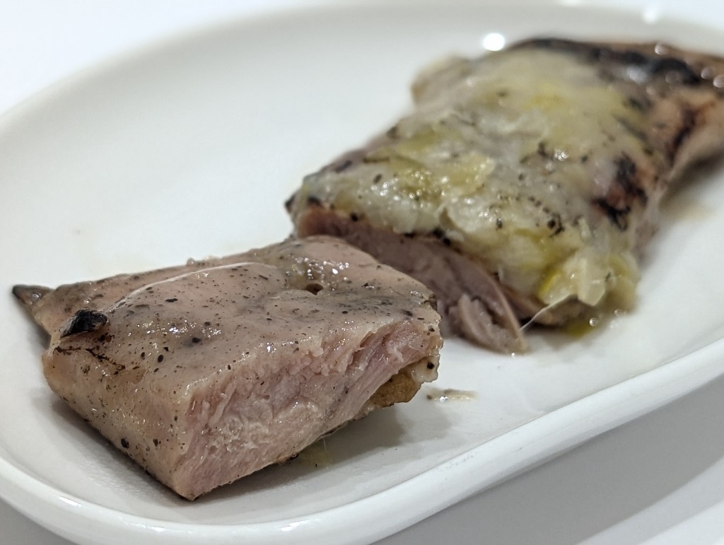 お腹が柔らかく炭火感しっかり、ねぎ塩タレも美味しく、塩味もしっかりあるのでおつまみみたい。