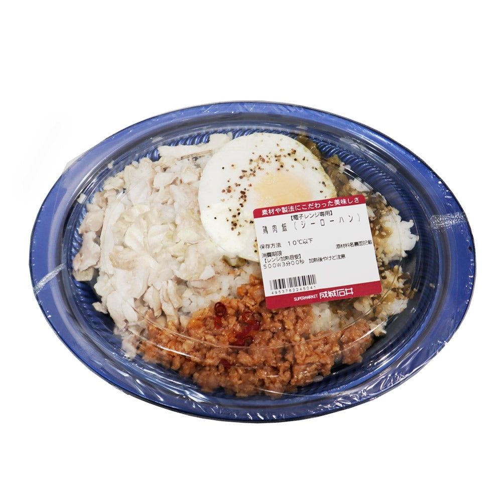 ◆塩とねぎ油をベースに生姜を用いてさっぱりとした味付けの蒸し鶏と、醤油や豆板醤でピリ辛に仕立てた鶏ひき肉をメインに高菜、目玉焼きをのせた「台湾風チキンライス」です。