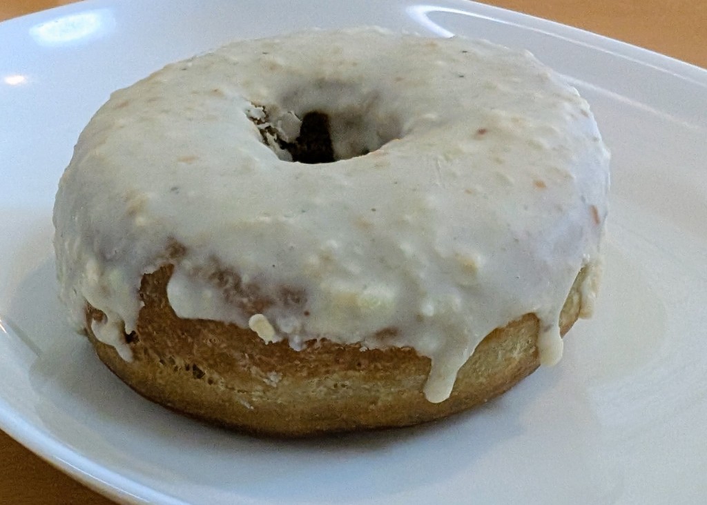 ドーナツ生地はふかっとしっとり口溶け良く、ドーナツらしい油脂感とほんのり塩味があり🍩