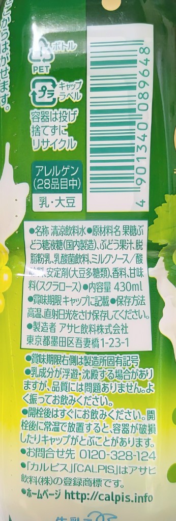 もぐナビホームへ > 乳飲料・豆乳 > 乳酸・乳酸菌飲料 > アサヒ カルピス ブレンドリッチグレープ 贅沢2種の白ぶどう&ミルクソース