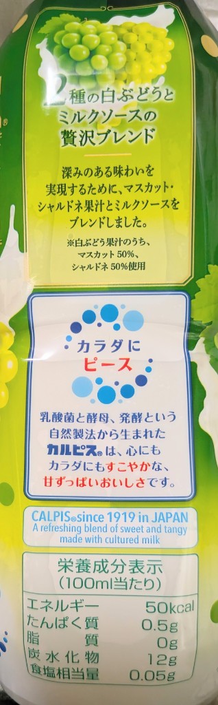 カルピスは濃く作るのが好きであった。 このカルピスも甘くて濃い。 おいしい。 白ブドウの風味がすごくする。 甘酸っぱいカルピスの味。 すごく甘いのじゃ やっぱりちょっと人工甘味料の味の味がする。 スクラロースなので、砂糖に似た味じゃが、やっぱり甘さに不自然さを少し感じるのう。 じゃが、まずいわけではない。 思った以上においしかった。 じゃが、やっぱりできれば人工甘味料は入れないで欲しかった。 コストの問題なんじゃろうが、カルピスは人工甘味…続きを読む
