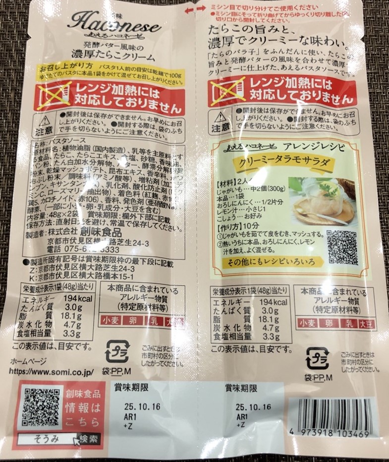 今回は、「あえるハコネーゼ 発酵バター風味の濃厚たらこクリーム」をレビューします。