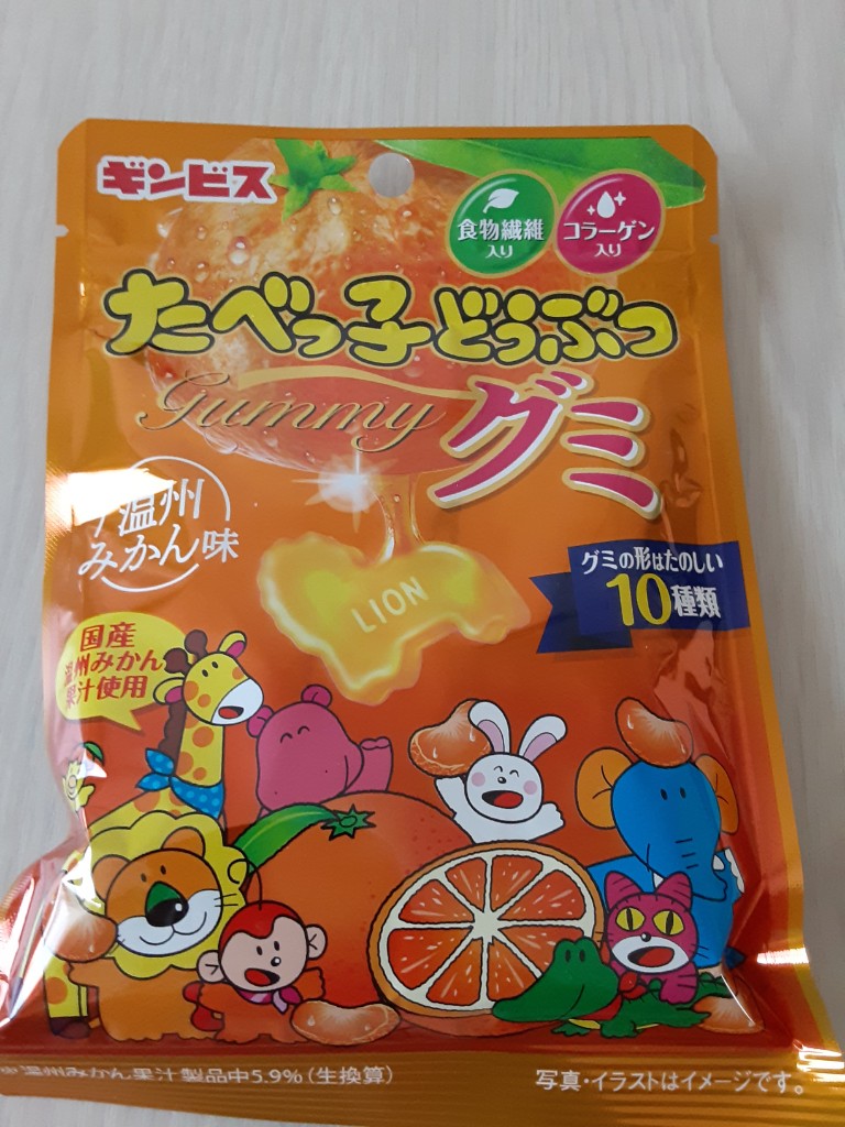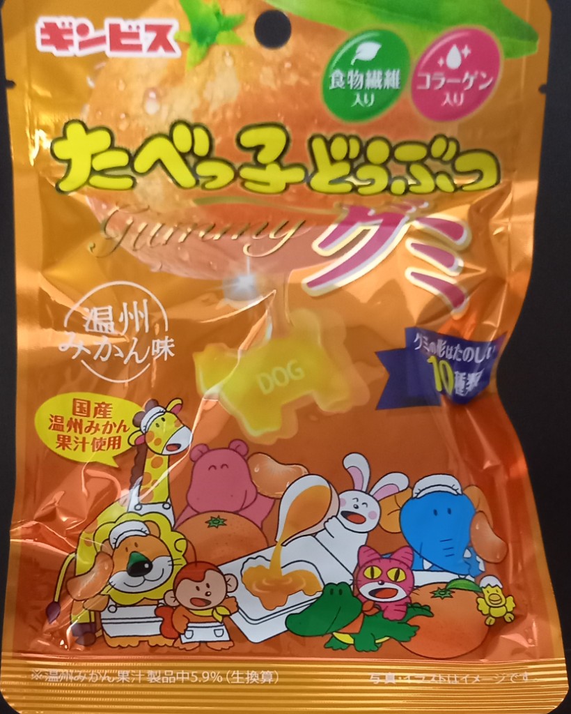 ギンビス たべっ子どうぶつグミ 温州みかん味。気になっていたこの商品。年末に購入しました。