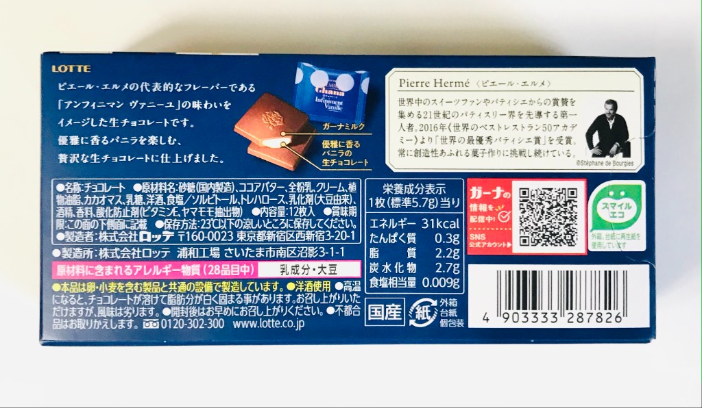 ロッテ プレミアムガーナ 生チョコレート アンフィニマン ヴァニーユ 箱12枚は、優雅に香るバニラの生チョコレートをガーナミルクの薄いシェルの中に閉じ込めることで、すっととろける繊細な口どけを感じられる贅沢な一枚に仕上げました。バニラ味のチョコとミルクチョコがほどよい甘さで食べやすいです。... 続きを読む