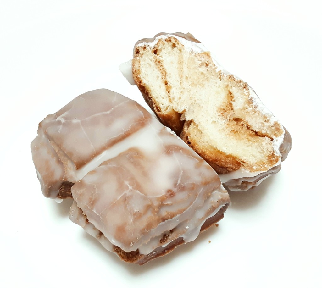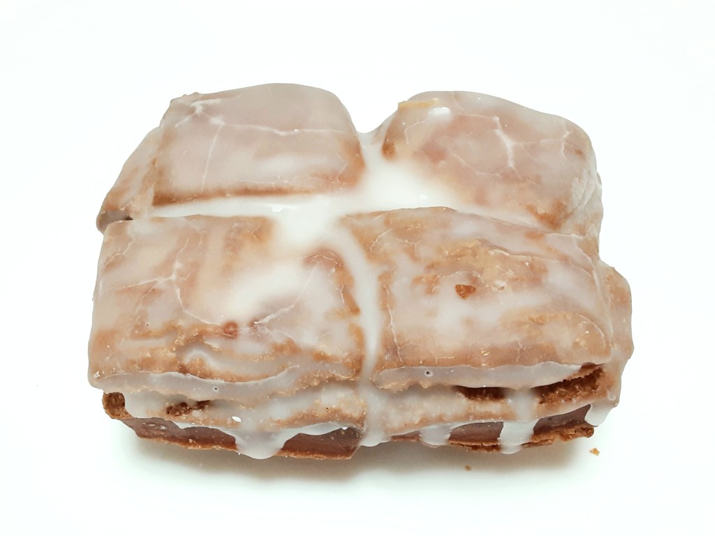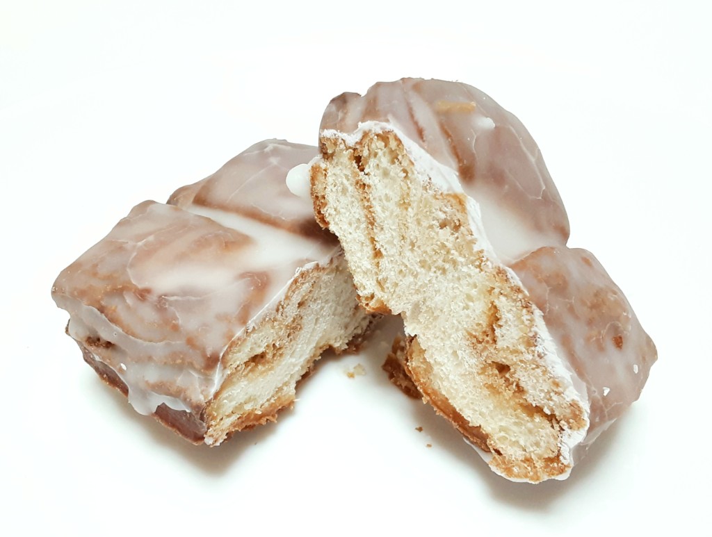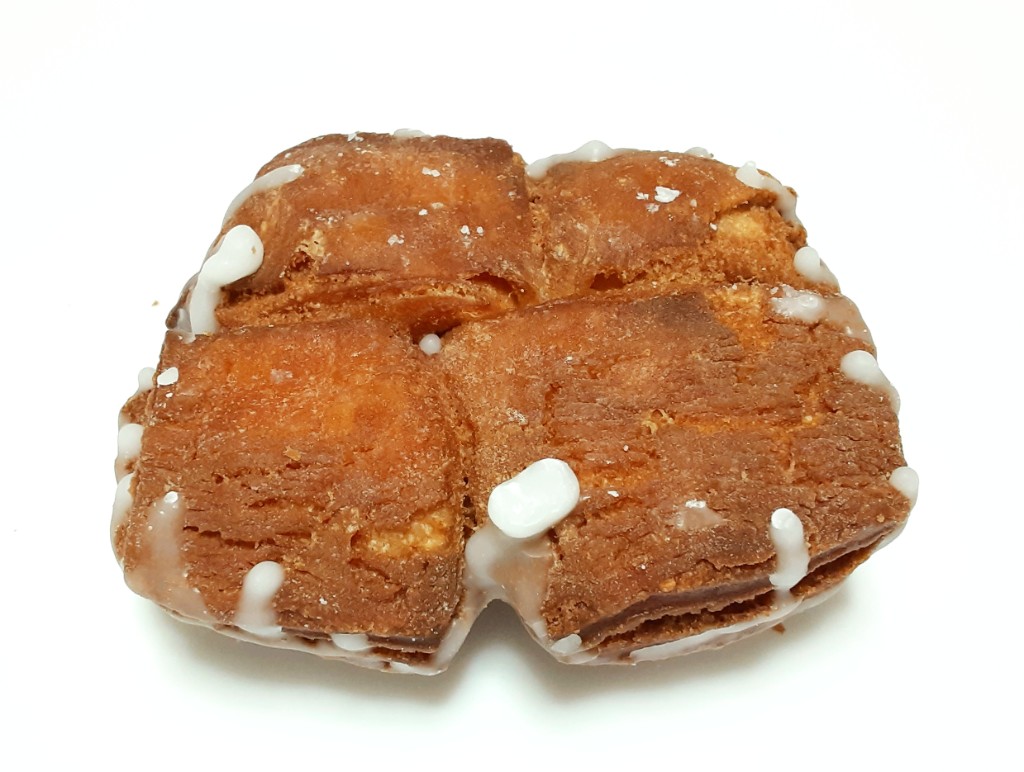 食感は菓子パンというより ドーナツ生地のミルフィーユ状な感じで歯ごたえあるサクッとした感じ。そこに甘いグレーズがかかっており ほのかにシナモン風味。ちぎると簡単に4分割できます。この商品は袋のままかじるのではなく きれいなお皿に載せてコーヒーと一緒に頂くと優雅なひとときが得られると思います。リピはありあり。定番にして欲しい商品です。見つけたらまた買います。1個 396kcal。... 続きを読む