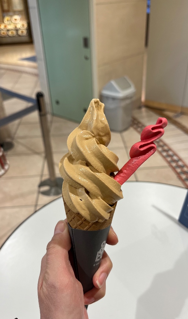 「天然ベルガモット香る&アールグレイのソフトクリーム じっくり煮出した自家製の紅茶を贅沢に合わせ、 最後に香りをトッピング。一口目にベルガモットが華やかに訪れ、 後から紅茶の風味が広がっていく。 濃厚なのにさっぱりとした味わいは、まさに“食べるミルクティー”です。」 百貨店のバレンタイン催事の実演販売で購入しました。 ソフトクリームはとてもあっさりしています。 微細氷の塊を舌で押し崩すような、少しコーンタイプのあいすくりんにミルク感を足したような口当たりです。…続きを読む