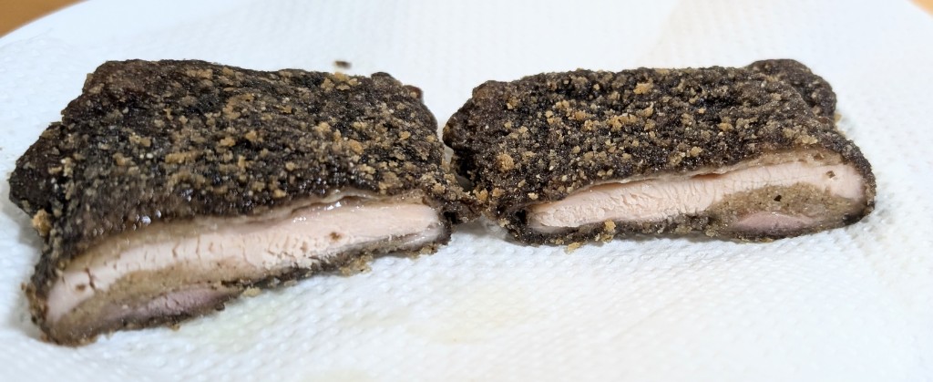 周りはザクっとしてお肉はジューシーで胡椒が結構効いてました。ニンニクもきました。