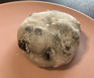 デイリーヤマザキのレジ横で売っている豆大福です。スーパーで売っているヤマザキさんの豆大福より大きめです。