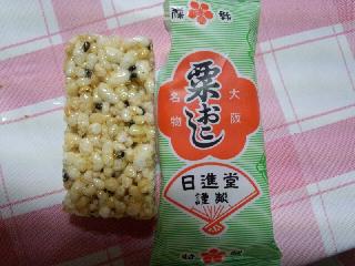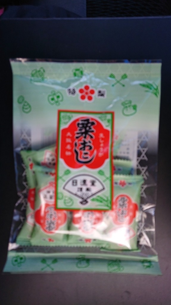 大阪名物粟おこし。日進堂のパッケージには昔っから馴染みがあり、関西ではお仏壇にお供えしてあるあるなお菓子という印象です。岩おこしと比べ、粒が粟ほど細かいそうで、秀吉の大阪城築上により、大阪が繁盛し、身を起こし、家を起こし、国を起こす、縁起の良い食べ物として、人気を得ていったそうですが、おこしを食べて起こしまくりという駄洒落が昔々からあるんだな、とウィキペディアを読んで思いました。当方の祖父母も食べていたような記憶があり、けっこう噛みごたえのある塊で、食感はボリボリでおいしいのですが、只今歯の治療中で、ゴムの詰め物を仮で入れているので気をつけて下さいね〜と先生から言われており、粟おこしをボリボリして仮歯を破壊したとなれば、治療中に何食うとんじゃよっ!と思われたら恥ずかしいので、気をつけながら奥歯で咀嚼しました。わりとご年配に人気の銘菓というイメージですが、長生きにはハチマルニイマル運動(80歳で20本以上の歯を!)と聞いた事があるんですが、80歳で粟おこしをボリボリ出来る歯が揃っているとなれば、そりゃ健康だろうなーとも思いました。生しょうが入りで、材料は水あめ、米、砂糖、生姜、黒ゴマと至ってシンプルながら上品な甘さ、心地の良い食感、ほんのり生姜風味、わりと何個でも食べてまうタイプのおやつです。日持ちもするし、軽くて持ち運びもしやすく、非常食にも最適かと思います。お客様相談室がフリーダイヤルでニッシンドウハロー(2410-86)という語呂合わせなところもなんかいいな、と思いました。おこしでハチマルニイマル(5/4(おこしの日)で8020)キャンペーンとかでセールとかあれば尚嬉し、と思いました。(粟)丶(・ω・`) ヨシヨシ