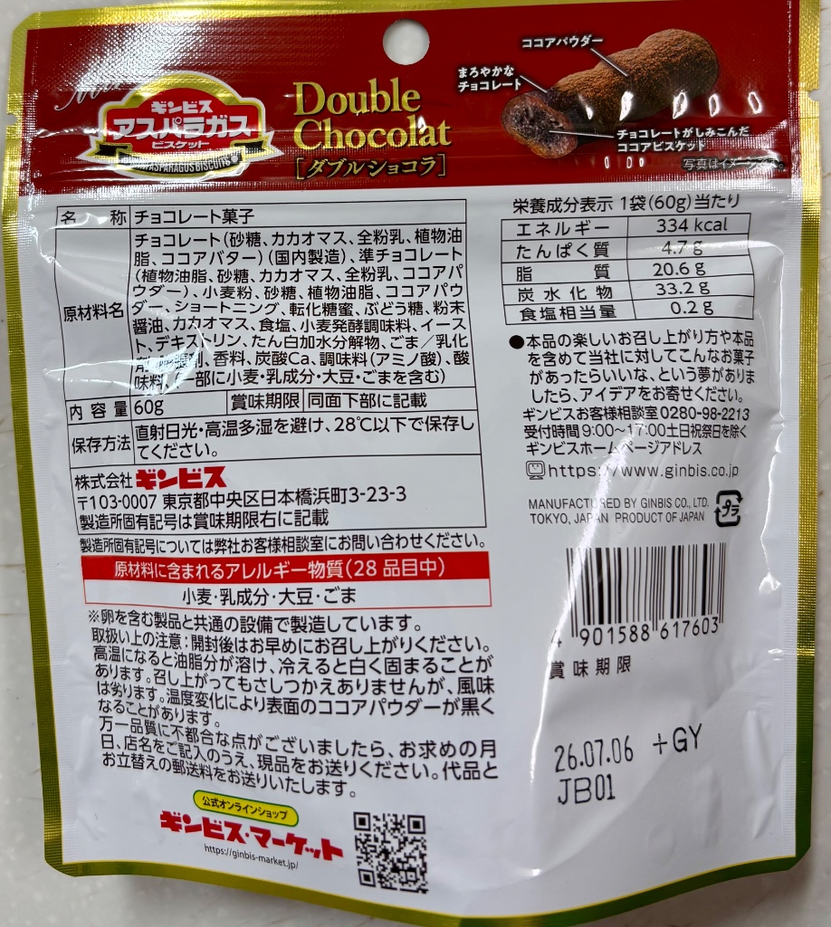 ギンビスアスパラガスみは無しかな。普通に美味しいチョコビスケットって感じ。