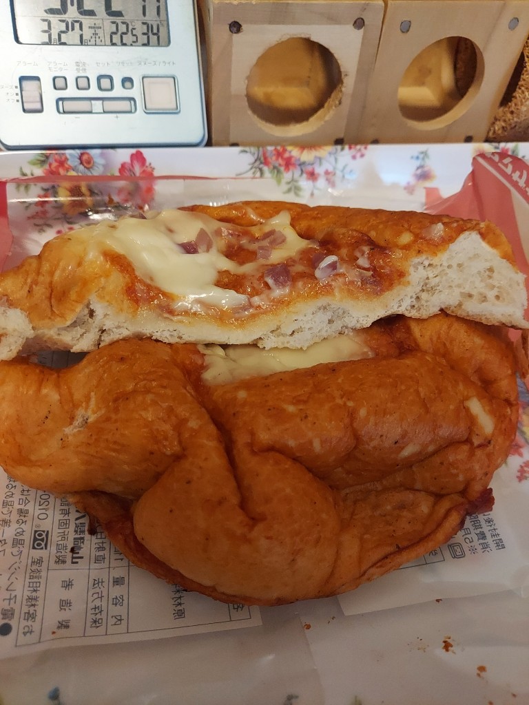 こういう丸くて平たいピザパンって、定期的に名前を変えて販売されている。