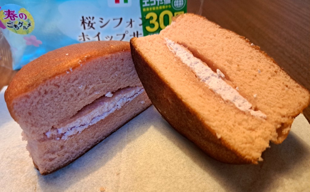 セブン-イレブン 桜シフォンのホイップサンドは、桜味のふんわりしっとりケーキ生地に桜風味のホイップを挟んだ春を感じる仕立てです。桜シフォンがフワフワでしっとりしていて、サクラ風味のホイップは甘さ控えめで美味しいです。... 続きを読む