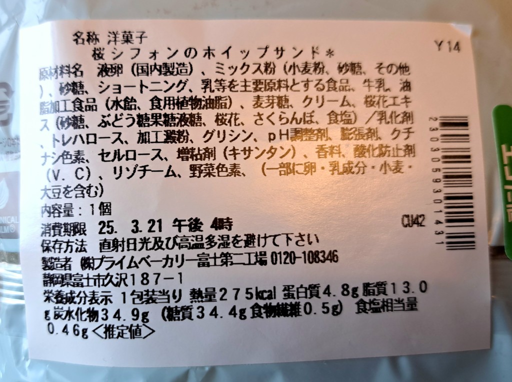 生地は結構しっとりとしていて取り出す際に焼き目部分が袋や手にベタベタとくっついてしまいました。甘すぎないクリームからは仄かな桜の塩味を感じることはできました。