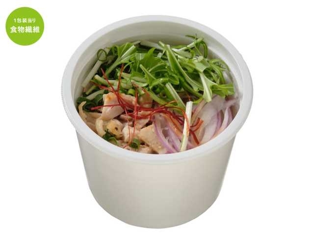 フォーをイメージしたオリジナルのアレンジメニューです。鶏だしが効いたスープをベースにスパイスとナンプラーを加え、水菜や紫玉ねぎを彩りよく盛付けました