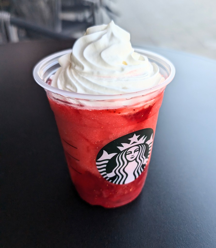 濃い苺のフラペチーノ🍓ミルクが入っていないので、がつんと苺味です。いちご100%のジュースとは違うので、酸味もありつつ、しっかり甘いです。甘〜いものが飲みたいけどさっぱりしたい、、という時におすすめ!!... 続きを読む