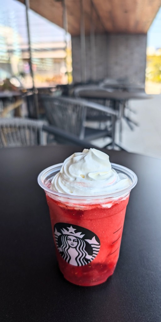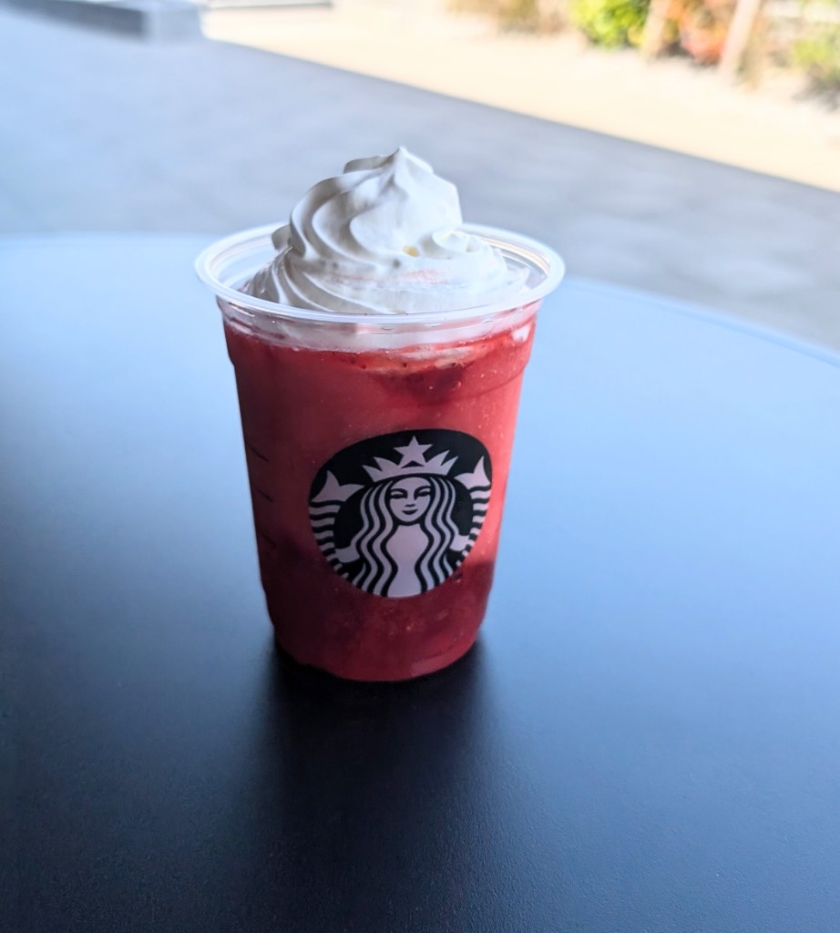 元々フルーツ系のフラペチーノは好きなので期待していましたが、真っ赤なフラペチーノというビジュアルにも惹かれていました。