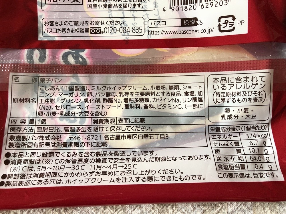 イオンでいつも安いのでよく買ってました。つぶあんのほうが好きですがこしあんもホイップに合うんだなとか思ってたのですが・・・