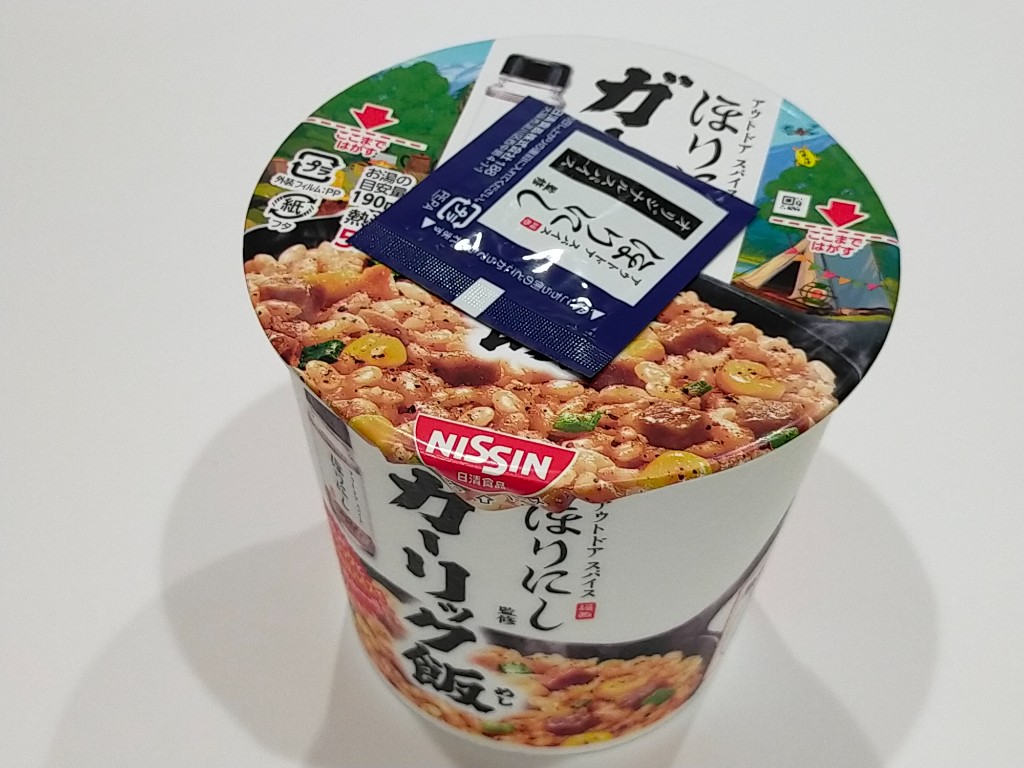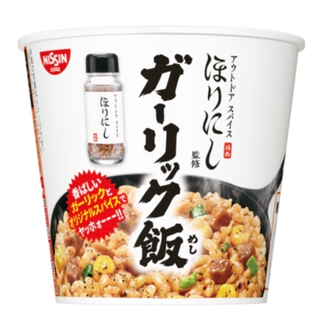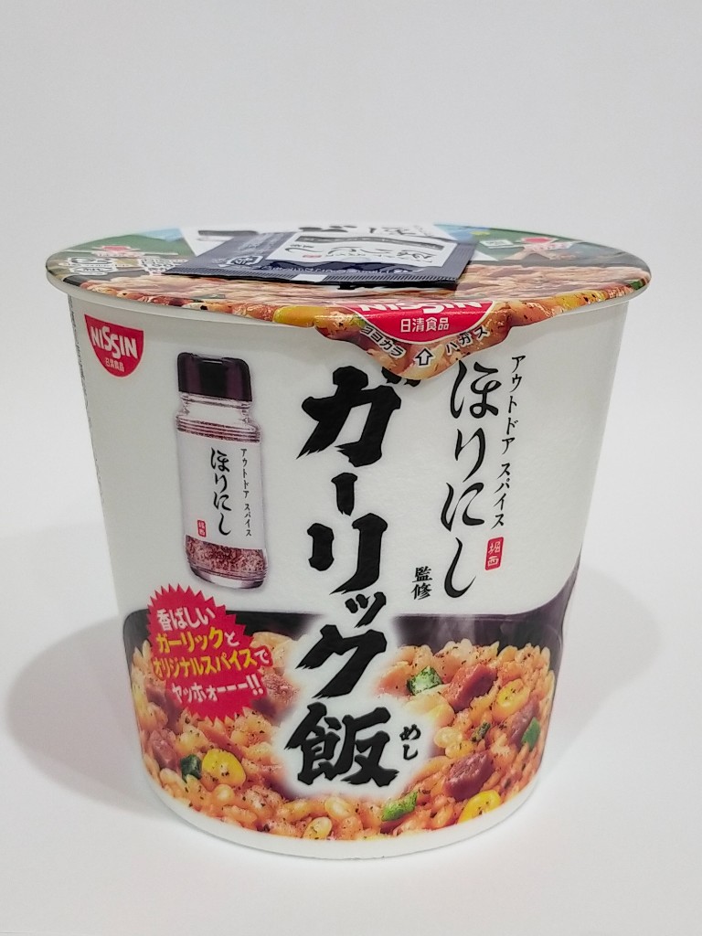 UFOと同時期に発売された、ほりにしのカップ飯です。 今回も本来のほりにしスパイスは使われていません。 ガーリックライスにほりにしっぽいスパイスが感じられます。 ガーリックが結構濃いめの味付けで美味しいですよ。 量は物足りんですがw