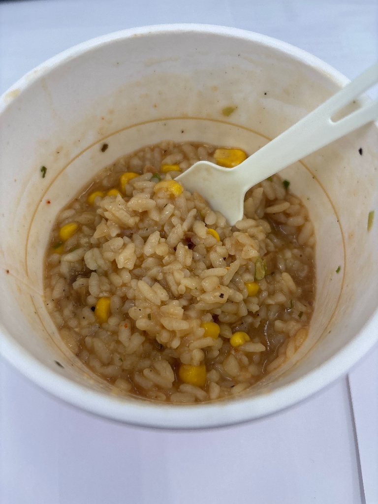 「カップ飯はだいだいこんな感じですよ」と教えてもらったんで、気を取り直してとりあえず食してみる