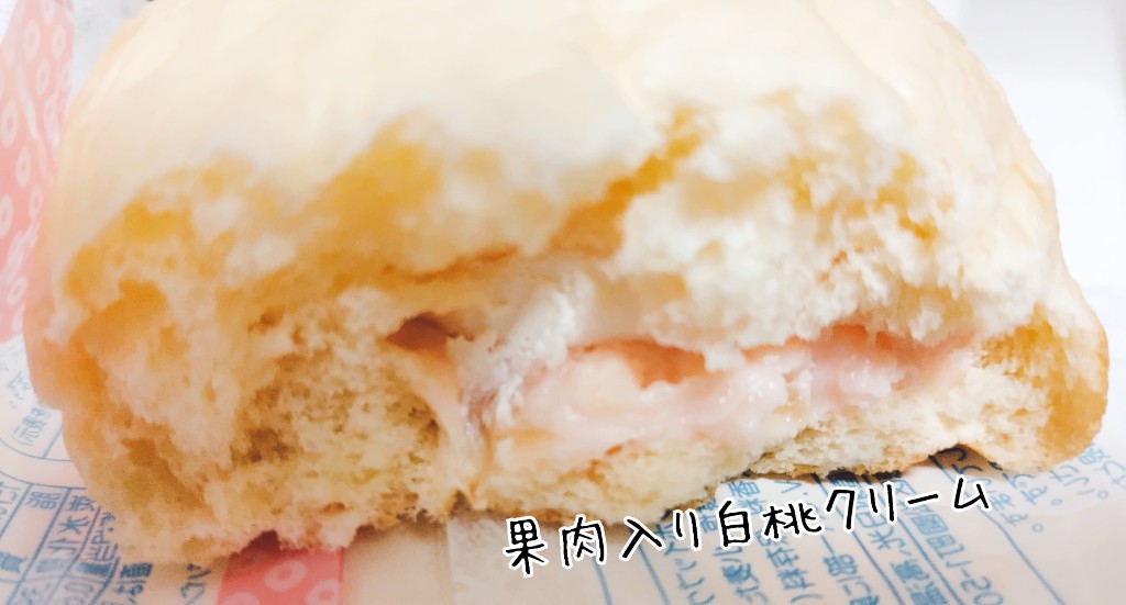 白桃果肉入りクリームのクリーム自体は甘くまろやかな優しい桃風味。